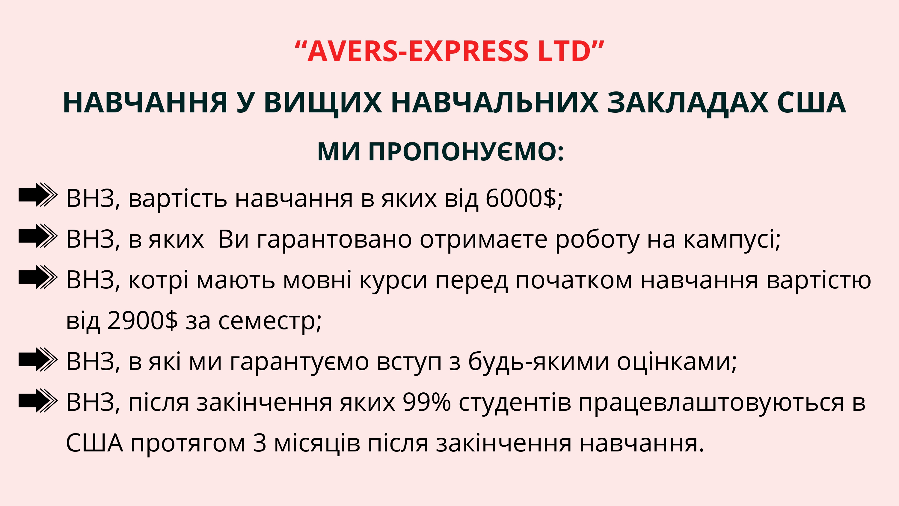 Ми гарантуємо вступ до ВНЗ США, з якими ми працюємо, незалежно від Ваших оцінок і рівня знання англійської мови!